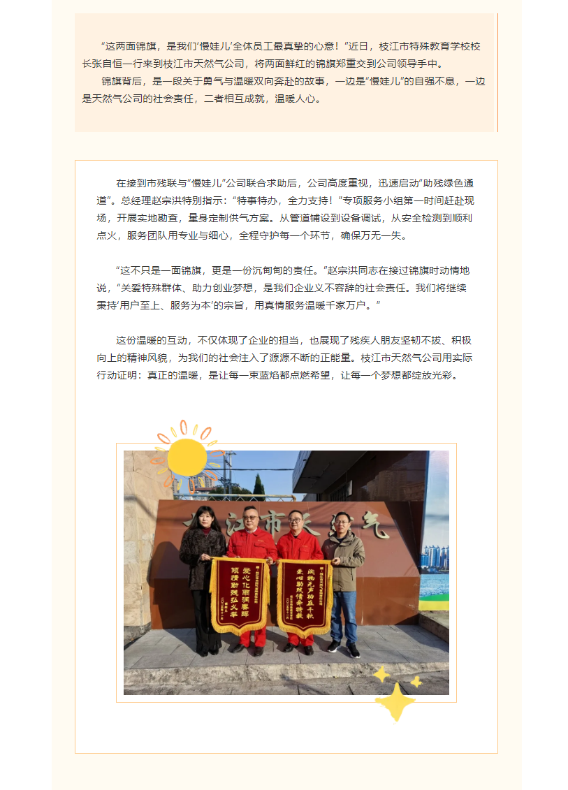 藍焰點亮希望,真情溫暖特教——枝江市天然氣公司公益助殘紀實