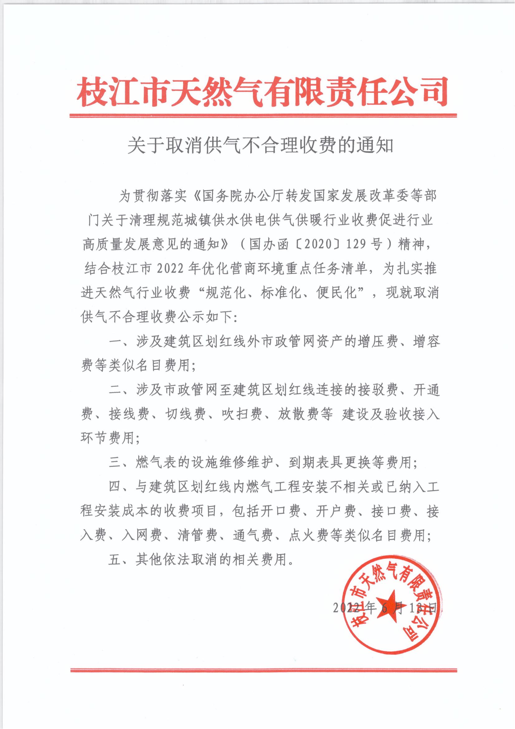 關(guān)于取消供氣不合理收費(fèi)的通知