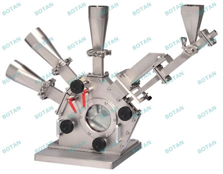 依據(jù)上述原則,對粉體的分散采用高速的引射噴嘴將粉 料引射入分級機(jī)中,利用高速氣流對粉體的剪切作用,使粉體分散成原級顆粒。此外為使分級后的超細(xì)粉達(dá)到較高的分級精度,采用射流附壁效應(yīng)與離心力、慣性力、多級分選組合的途徑。