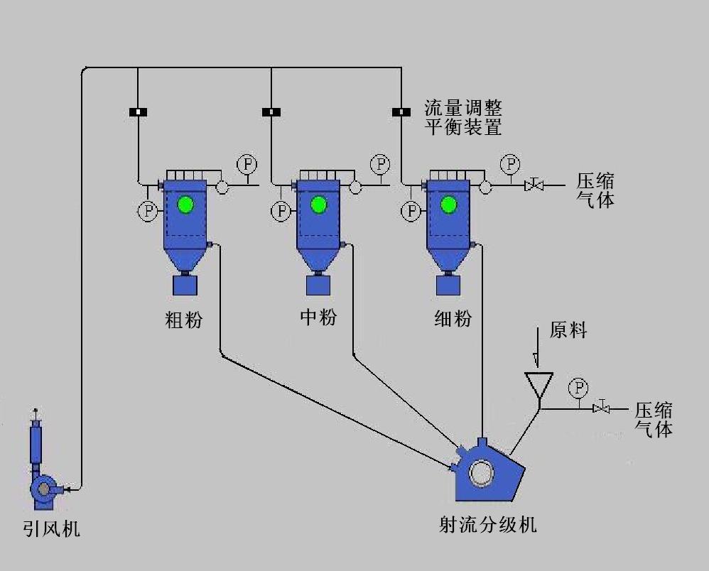 具有非常精確和穩(wěn)定的分級效果,適用于對產(chǎn)品質(zhì)量和穩(wěn)定性要求極高的精密分級,將原料一次性分為粗、中、細(xì)粉 三部分。